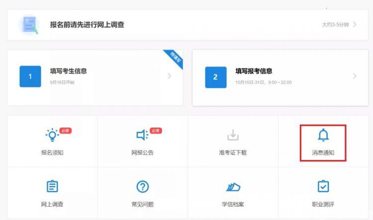 消息通知主要是报考点或招生单位发送的招考网报信息,考生登录网报平台,查看消息通知即可!