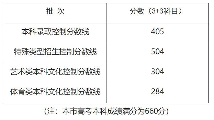2023年上海市普通高等学校秋季招生本科各批次录取控制分数线经审定公布如下: