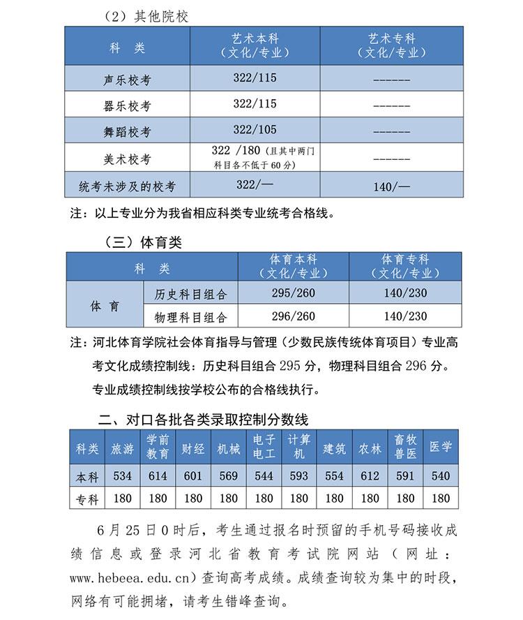 2.体育类(体育文、体育理)专科录取最低控制分数线为130分。
