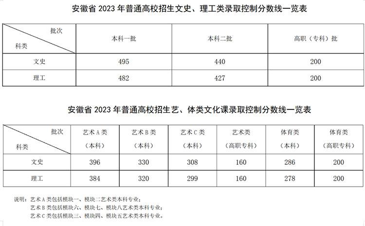 五、艺术类专业的录取由文化分数线和艺术统考分数线双线控制。各批次的录取最低控制分数线分别为: