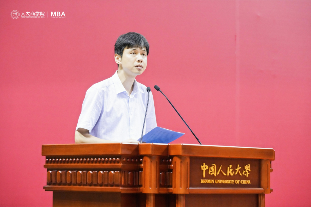 “今天在座的各位都是各行各业的优秀青年才俊,更是商学院最新鲜的血液。你们即将成为新时代的人大人,踏上人生中充实知识、增长阅历的新征程。”