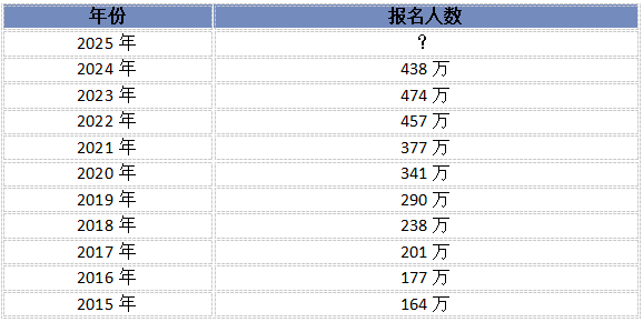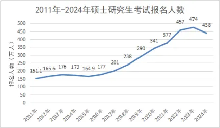 以下是2015年-2024年考研报名人数情况,在连续多年人数呈现增长态势之后,2024年出现了下降的情形。