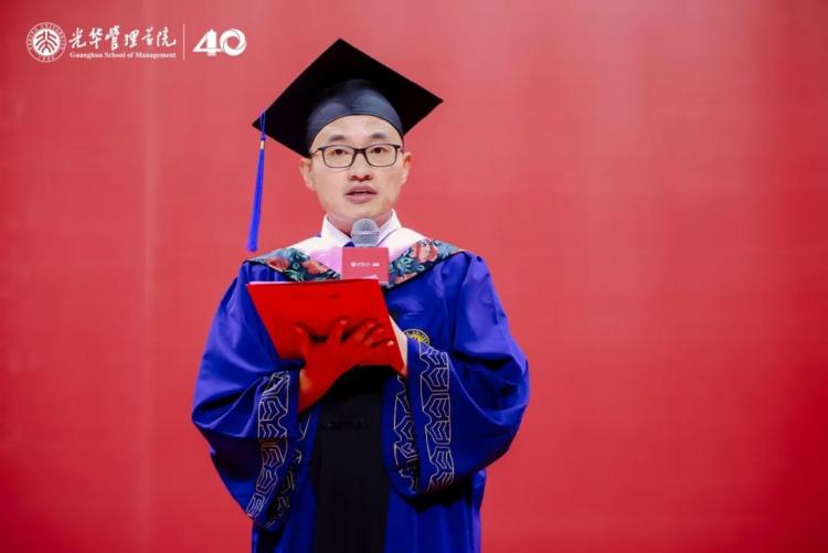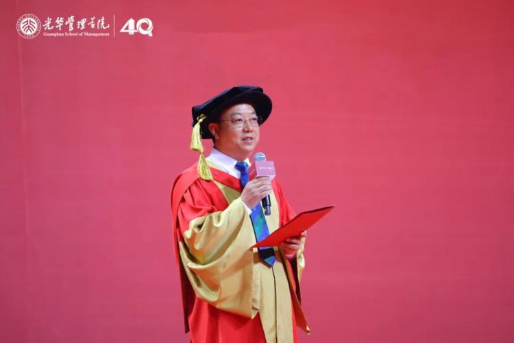 马化祥表示,大家在承载着收获与希望的时节相聚在一起,共同见证1500余位同学在百年燕园、在北大光华毕业的光荣时刻。今年恰逢北大光华四十周年院庆,学院秉承“创造管理知识,培养商界领袖,推动社会进步”的使命,始终将经管学术研究、学科建设与国家重大战略发展方向紧密相连,站在中国看世界,站在世界看中国,培养具备国际眼光的担当民族复兴大任的时代新人。四十载光阴中,学院培养出的四万余名校友,活跃于中国及全球的各个领域,以不同的方式和节奏,担当时代责任、引领未来发展。回首北大时光,同学们凭借自身的刻苦努力和求知进取,写就了独特而不凡的燕园印记。2025年,我们共同站在这重要的时间节点,成为光华管理学院再续征程的见证者,愿所有光华人齐心共进,续写光华的不朽篇章,为我国建设教育、科技、人才强国,做出新的更大贡献。