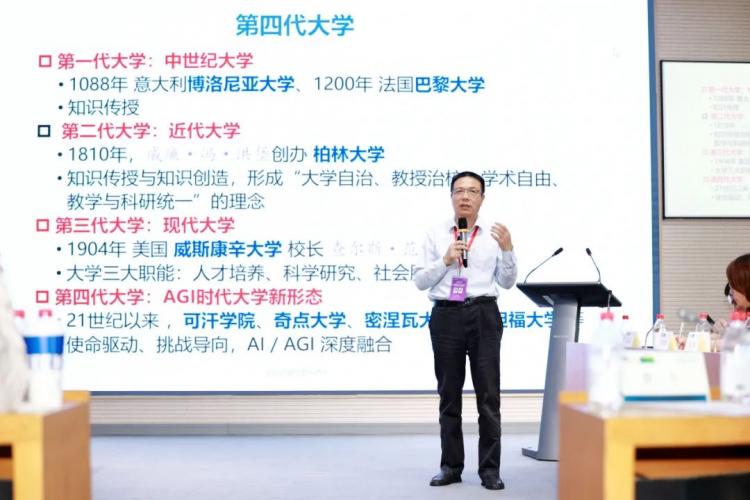 上海市管理科学学会理事长霍佳震教授主持了主旨演讲环节。中国高质量MBA教育认证(CAMEA)工作委员会副主任徐飞教授,发表了题为“AGI时代商科教育的非编码能力”的演讲。在演讲中,徐飞教授着重强调了在AGI时代,商科教育变革的紧迫性。作为一项通用技术,AGI将重塑各行各业,并对教育领域产生深远影响,传统的知识与能力中心主义将逐渐退出历史舞台。他指出,在AGI时代,高等教育及商科教育正面临一系列重大挑战,涵盖第四代大学形态的出现、知识半衰期骤降、高校专业深度调整、商学院生源锐减,以及劳动力市场发生深刻变化等多个层面。为有效应对这些挑战,必须大力培养学生的非编码能力,包括直觉、创造力、道德情感等人类独有的能力,以实现人类与AI的协同发展。