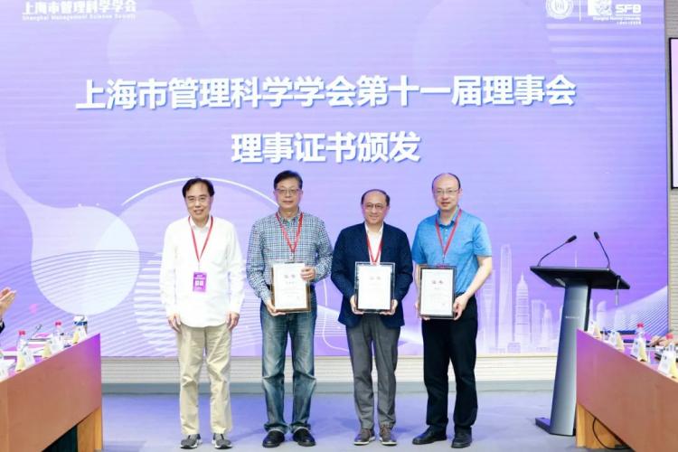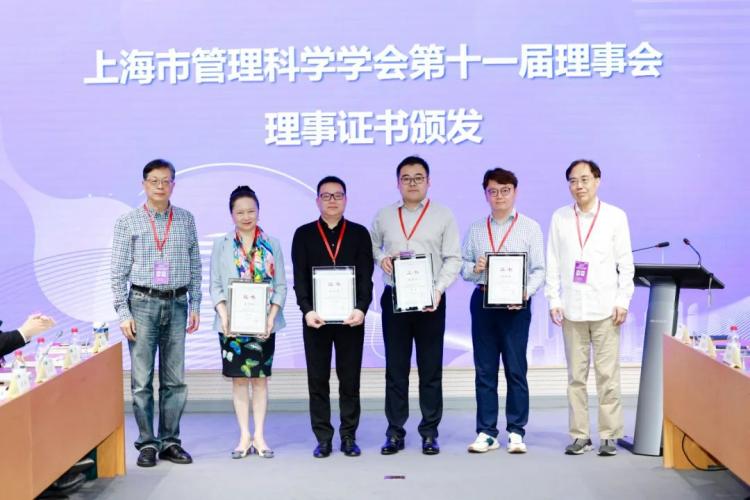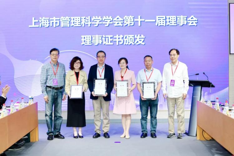 上海市管理科学学会名誉理事长王方华教授、上海市管理科学学会理事长霍佳震教授、上海市管理科学学会副理事长兼秘书长尤建新教授为上海市管理科学学会第十一届理事会理事颁发证书。随后,上海师范大学商学院与智慧树的“AI数字学伴”正式发布,华东师范大学经济与管理学院院长殷德生教授,智慧树上海区域总监孙峥嵘,以及上海师范大学商学院党委书记张春丽共同为“AI数字学伴”揭幕。