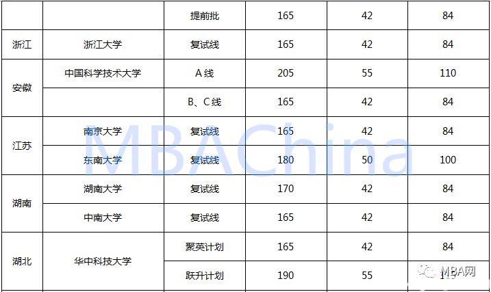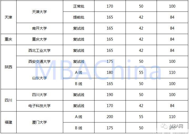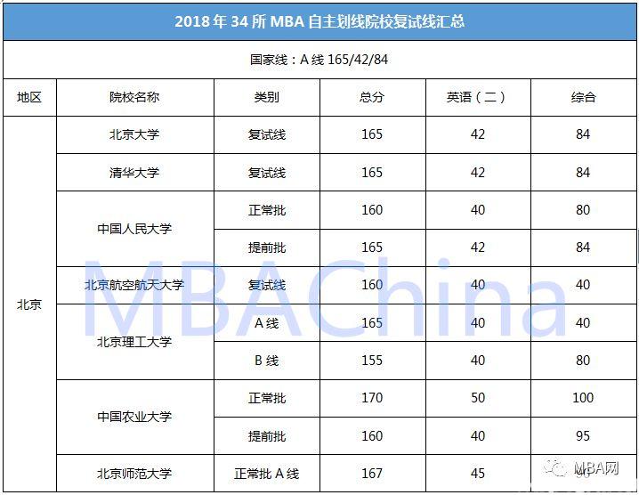 2018年34所自主划线院校MBA复试线