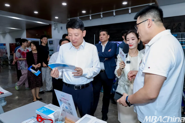 校领导亲切的走访各校友企业展位,并与校友进行亲切交流并对MBA教育提出了更高要求,同时对2025级新生提出期许。