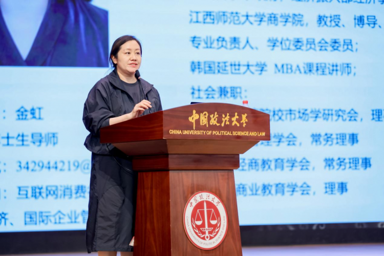 随后,2025级新生代表金星发言,以“与法治星空下共赴一场思想与事业的远征”为题。她感谢学校与师长,阐述因其“政法商融合”理念从而选择法大MBA,法大教学能兼顾商业知识与法治视野。最后,她展望学习生活,正视平衡工作、家庭与学业的挑战,呼吁新生践行校训,成长为商业文明践行者。