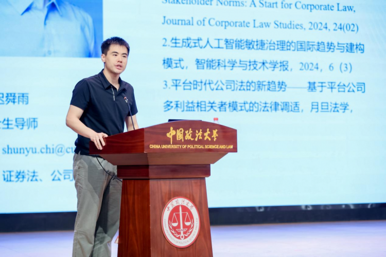 2014级校友、MBA校友会会长石宇随后分享。他提到在法大学习期间完善了价值投资理论七步法,并以金开新能为例,讲述其从濒临退市到转型绿电业务、股价飙升的历程,强调法大培养的专业眼光助力价值发现。接着,金开新能源有限公司风控部副部长、法大校友田阔从战略规划角度介绍企业,金开新能是央地协同混改典范,2023年引入战略投资人,以“双碳”为目标,形成“三条曲线”布局,涵盖清洁电力、低碳产品供应、算电协同业务,还介绍了产业链延伸与数字化风控工作,强调“政法商融合”理念,并欢迎同学们交流。