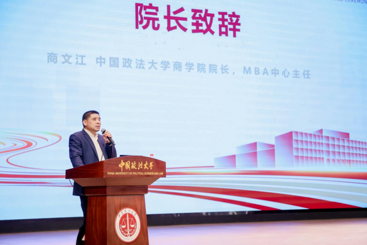 下午13时,伴随着庄严肃穆的国歌,典礼正式拉开序幕。中国政法大学商学院院长兼MBA教育中心主任商文江首先发表致辞。他首先对校友及校外友人的支持表示感谢,强调校友是学校发展的重要依靠。并特别指出时间管理是MBA学习与未来发展的重要必修课,呼吁全体师生共同加强。他重点阐述了中国政法大学MBA“政法商融合”的特色,指出法律与商业的关联不仅限于合规,合算与合约同样关键,鼓励新生结合学校法律学科优势,聚焦法律与商业关系的梳理、验证与实践,以特色入主流。同时,他提醒新生在数字化与人工智能时代,要坚守独立思考能力,传承学校优良传统。最后,商文江教授祝愿新生顺利毕业,当大家带着政法商融合的思维重返战场,这张文凭将不仅是证书,更是商业世界的有力支撑。