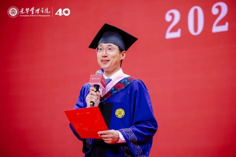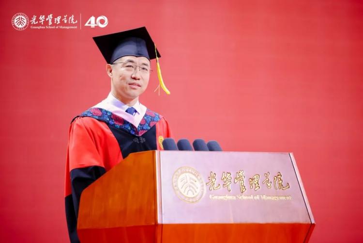 马化祥表示,大家在承载着收获与希望的时节相聚在一起,共同见证1500余位同学在百年燕园、在北大光华毕业的光荣时刻。今年恰逢北大光华四十周年院庆,学院秉承“创造管理知识,培养商界领袖,推动社会进步”的使命,始终将经管学术研究、学科建设与国家重大战略发展方向紧密相连,站在中国看世界,站在世界看中国,培养具备国际眼光的担当民族复兴大任的时代新人。四十载光阴中,学院培养出的四万余名校友,活跃于中国及全球的各个领域,以不同的方式和节奏,担当时代责任、引领未来发展。回首北大时光,同学们凭借自身的刻苦努力和求知进取,写就了独特而不凡的燕园印记。2025年,我们共同站在这重要的时间节点,成为光华管理学院再续征程的见证者,愿所有光华人齐心共进,续写光华的不朽篇章,为我国建设教育、科技、人才强国,做出新的更大贡献。