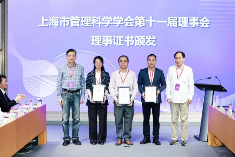 上海市管理科学学会名誉理事长王方华教授、上海市管理科学学会理事长霍佳震教授、上海市管理科学学会副理事长兼秘书长尤建新教授为上海市管理科学学会第十一届理事会理事颁发证书。随后,上海师范大学商学院与智慧树的“AI数字学伴”正式发布,华东师范大学经济与管理学院院长殷德生教授,智慧树上海区域总监孙峥嵘,以及上海师范大学商学院党委书记张春丽共同为“AI数字学伴”揭幕。